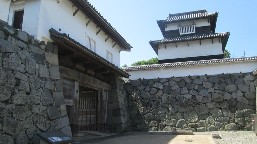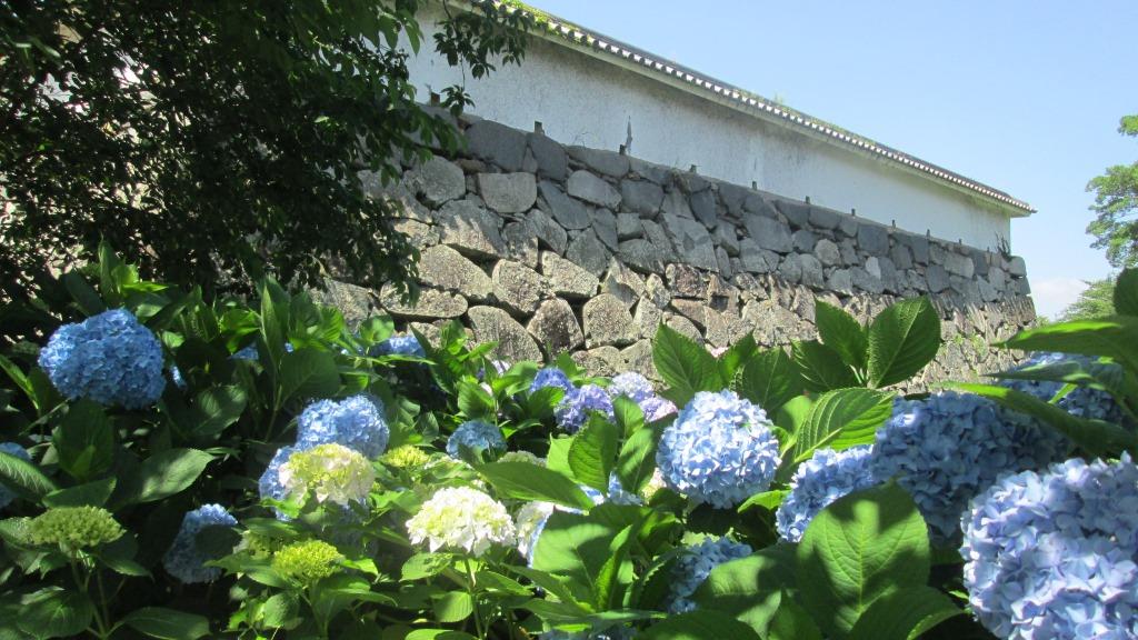 紫陽花は櫓の城壁を背景に美しく咲いていました。