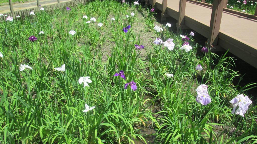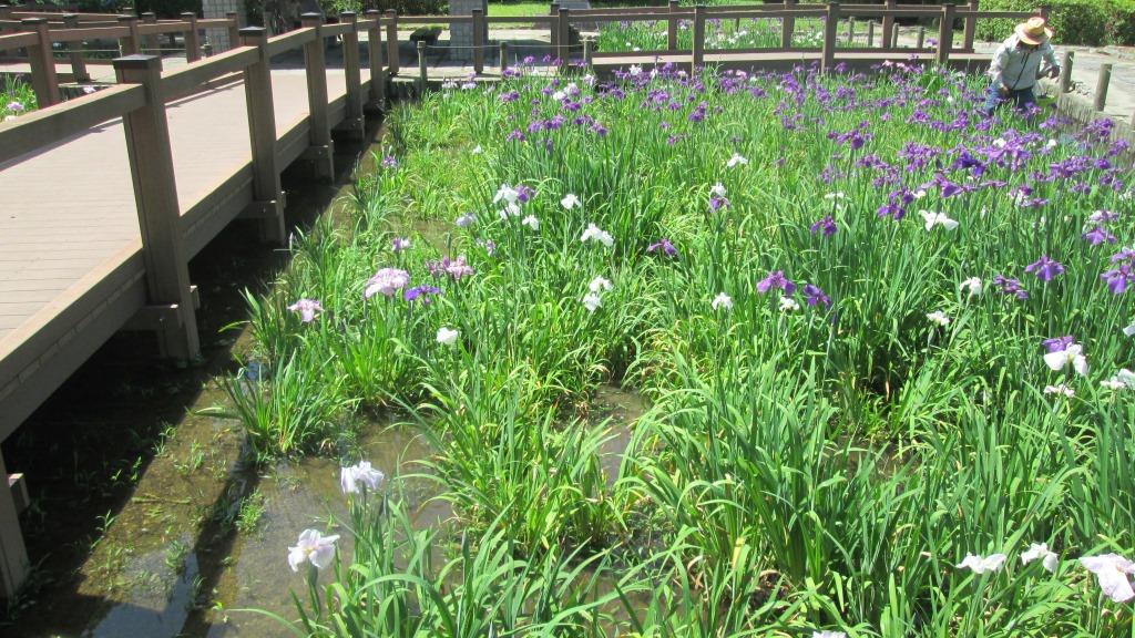 花菖蒲園は小規模ながら、毎年、この時期には紫やピンクの花が咲き、市民を楽しましてくれます。